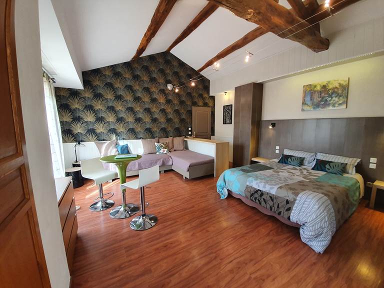 Nous proposons 2 chambres d'hôtes d'inspirations différentes pouvant accueillir chacune jusqu'à 4 personnes dans un bâtiment annexe avec accès direct sur la cour.